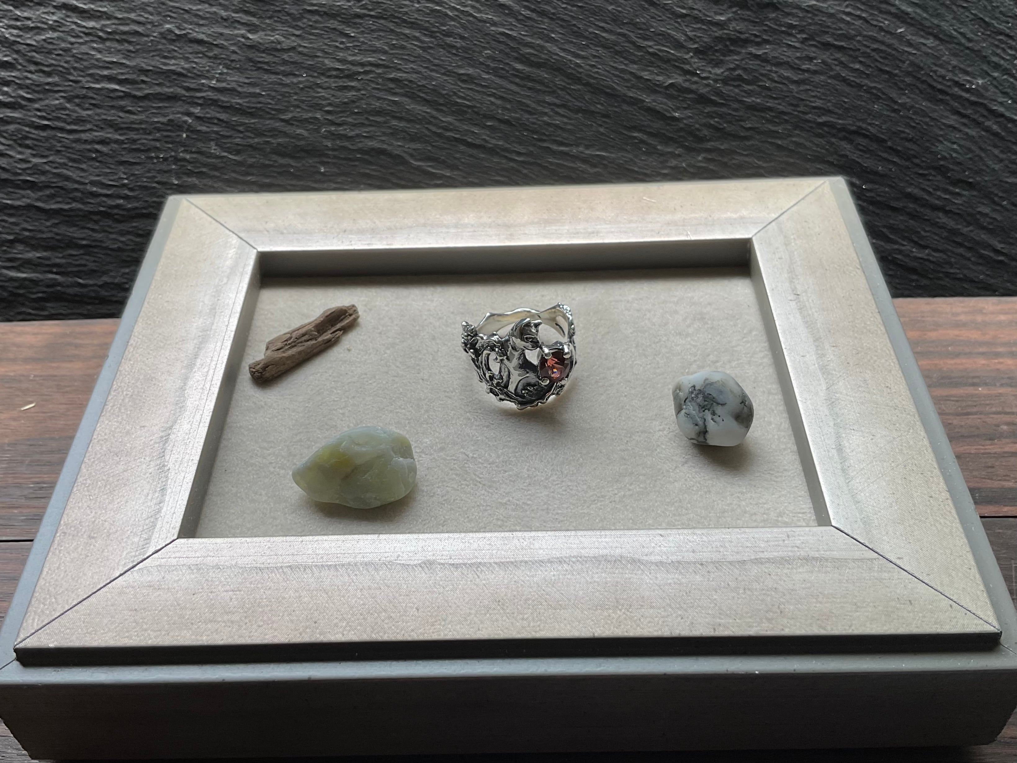 ※こちらの水猫リング単品や作品のセミオーダーは承っております。入れたい石などありましたらお気軽のご相談ください。