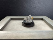 お客様からお持ち寄りいただいた石に合わせて枠をつくり猫と尻尾がちょうどよく挟み込んでいる位置に配置しました。猫の箇所としっぽのみマット加工を施していてほんのり猫が際立っています。全面に水のモチーフ施しており、溶け込むように猫が微笑み佇んでいる作品です。