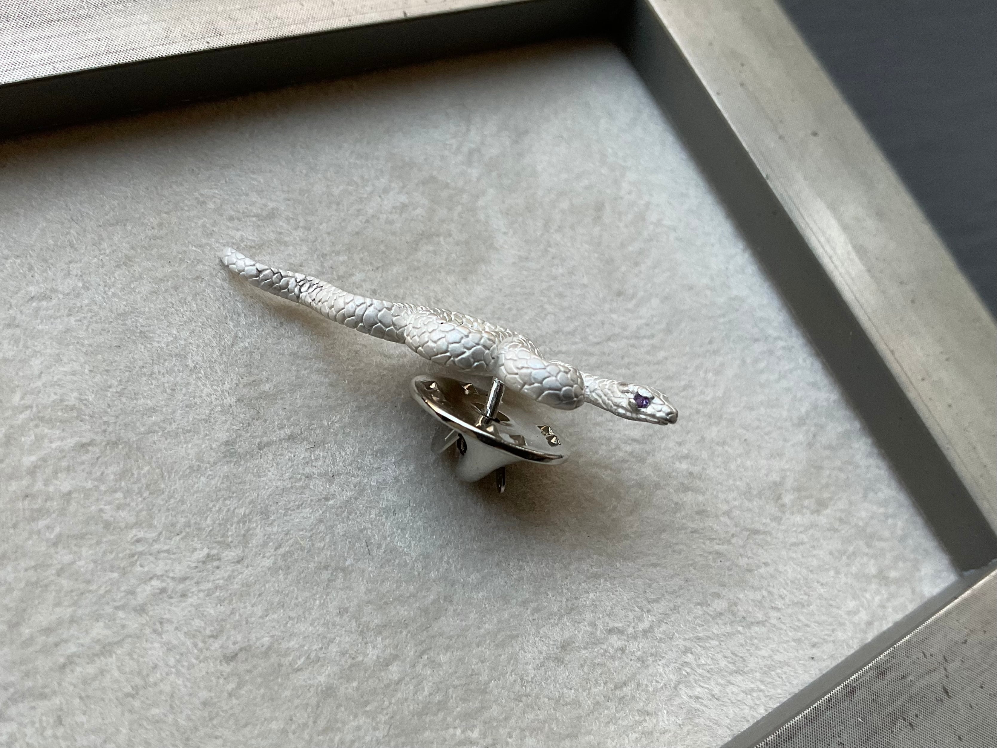 ピンブローチ「白蛇(アメシスト)」シルバージュエリー
