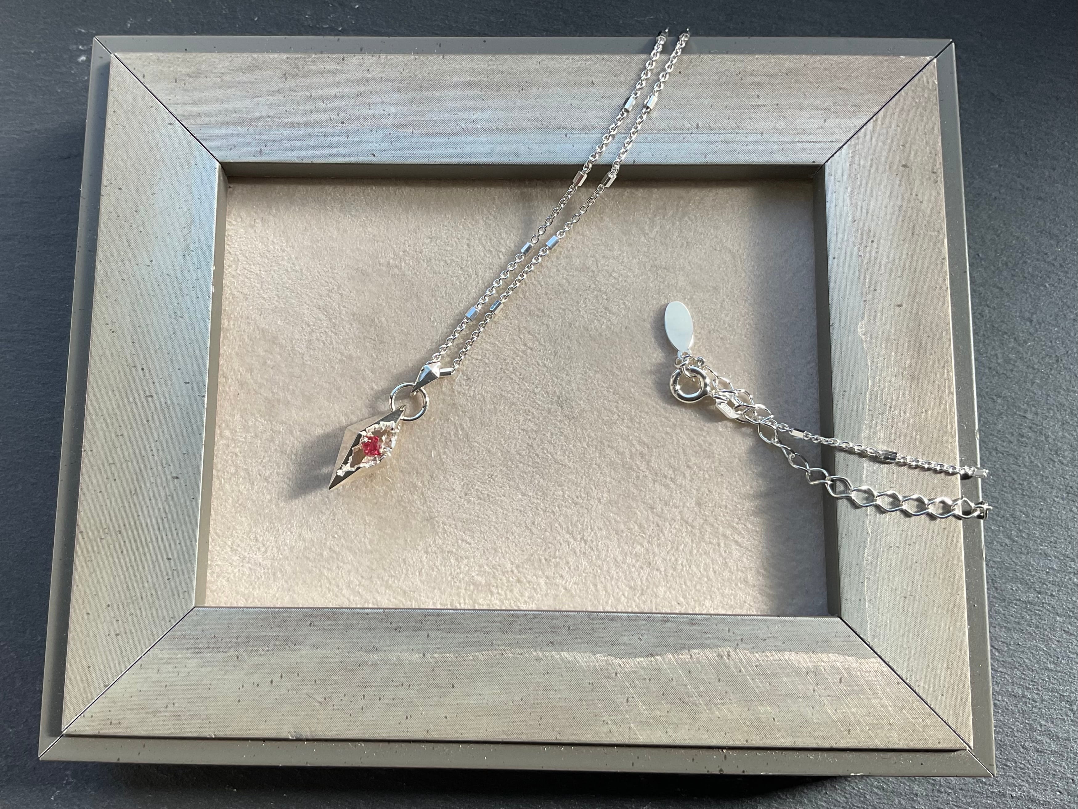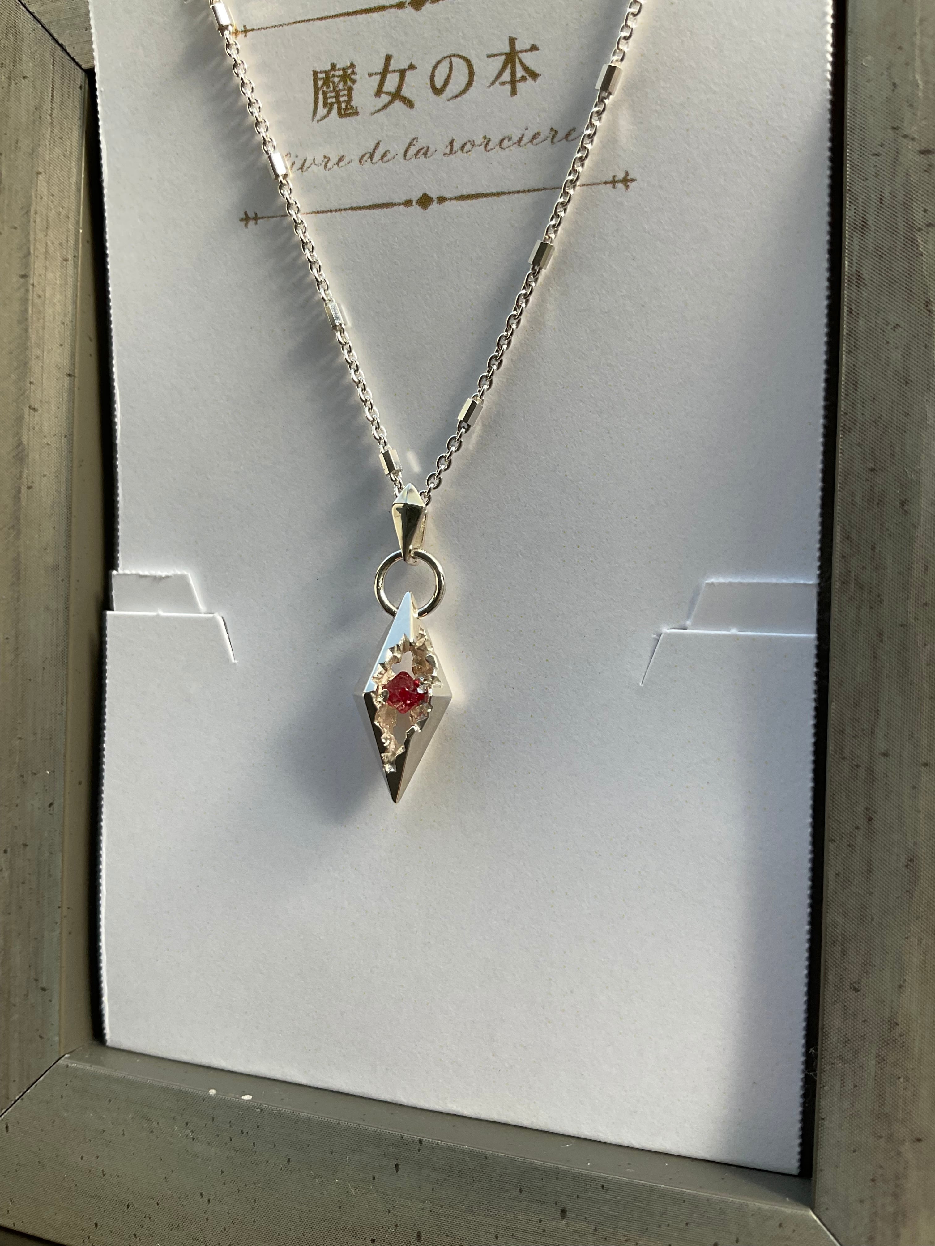 作品名「単結晶ジオードペンダント(シルバージュエリー)スピネル原石(ミャンマー、モゴック産)」