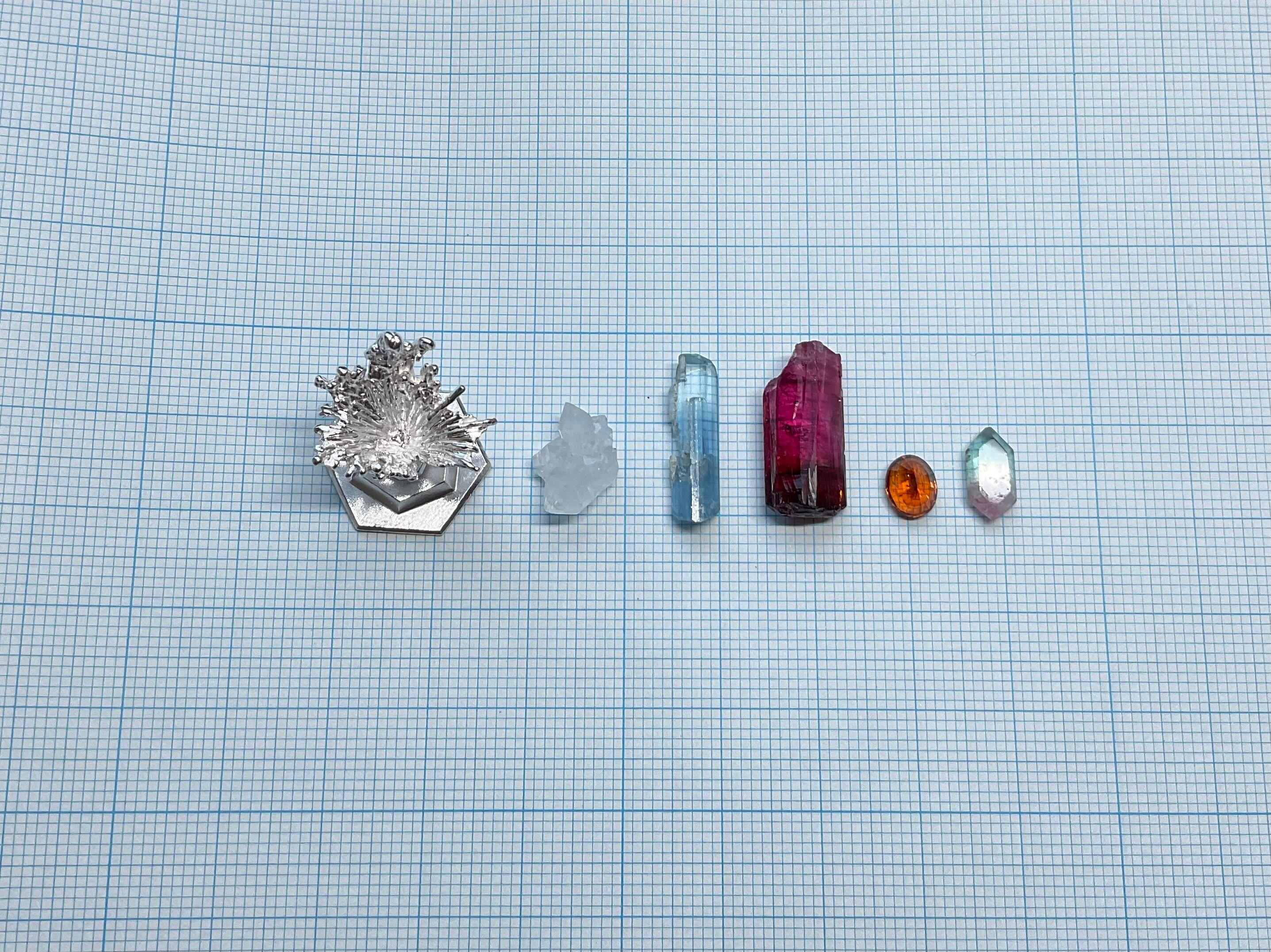 水台座より大きめのルース、鉱石が乗ります。小さい鉱石も反射できらめき、より際立ちます。水台座は置ける鉱石などの高さに制限がありましたが、こちらはタックなども使うとより高さのあるものを安定して造形と共に楽しむことができる作品になっています。小さなクラスター鉱物など置いてみると思ってた以上にフィット感がでると感じました。