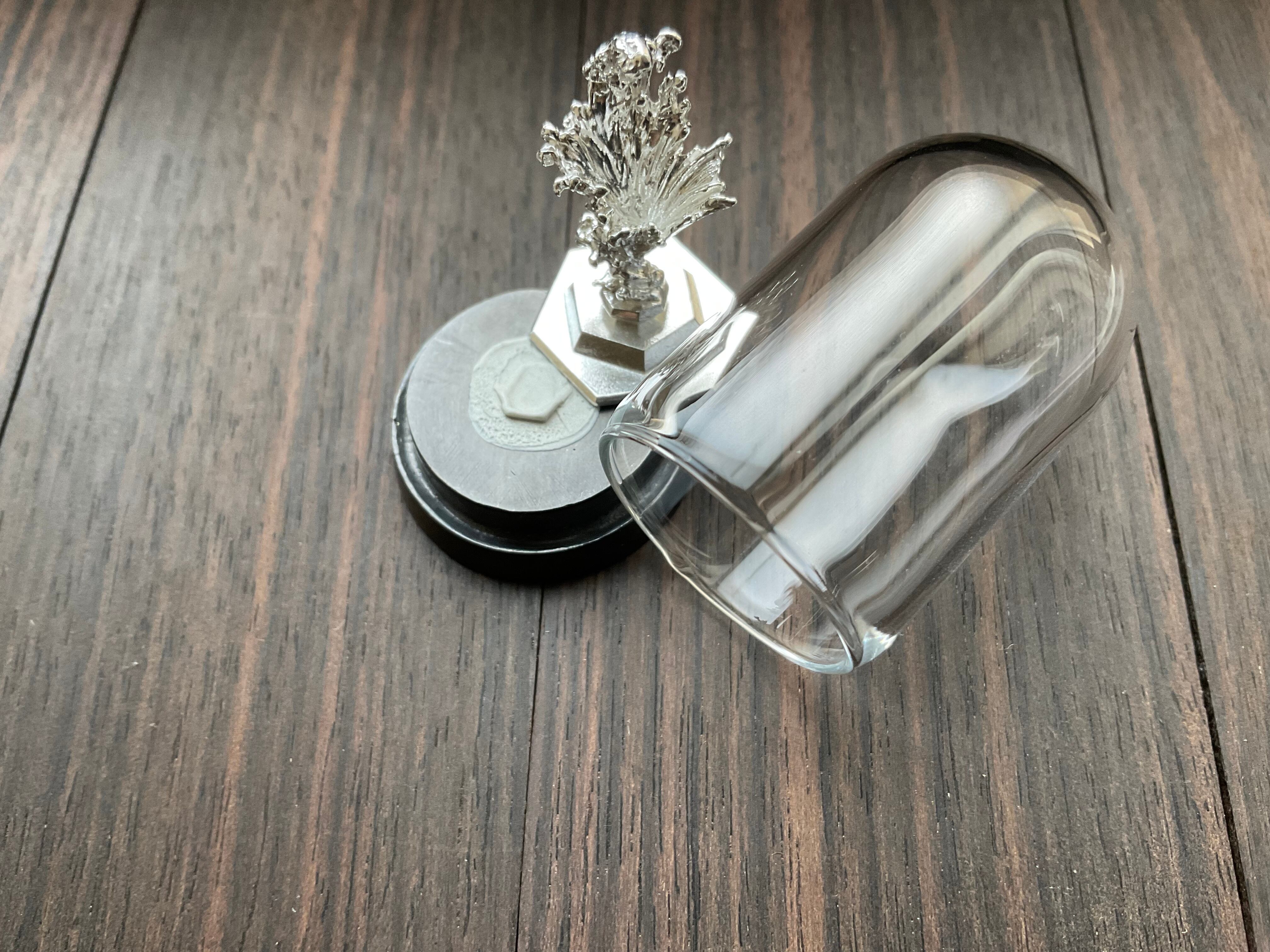 真鍮製品は作者自作品となりガラスについては輸入品となっております。ガラスを被せてある状態ですので真鍮土台とガラス素材が被せると外れなくなるわけではないので、お取り扱いご注意ください(タックなどをガラスの蓋の底に少し着けると、外れにくくすることはできます)